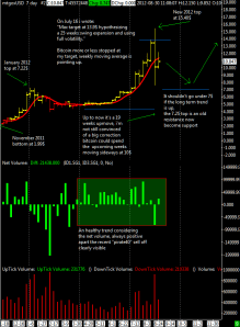 I’m skeptic about a big correction because the buyers are still dominant compared to the sellers during this strong uptrend and one big investor can’t control the market on a temporal scale, it’s much more difficult to consistently manipulate a market on a time basis therefore i’m not much worried for the presence of this big player at MtGox, the only damage he can do is to add volatility that might deteriorate investor sentiment.