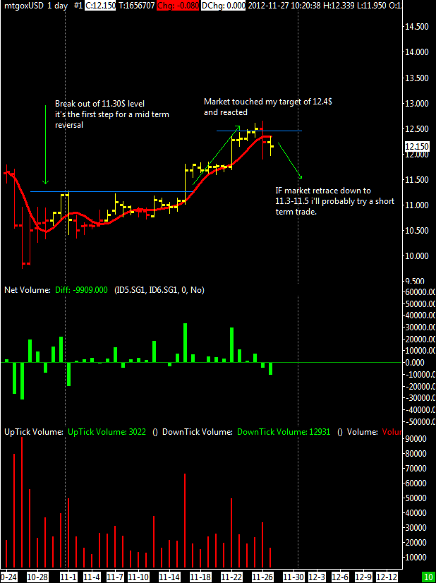 BTC/USD completed as expected the rebound up to 12.40$ i think that it will remain under it for the remaining part of this week. In my previous update i’ve said that i’d have considered a buy above 11.3$, well i’m not too much convinced for a mid term up movement because of the upcoming block halving date (it’s expected to happen tomorrow), it’s the first time that such event happens and i think that there is an high expectation by investors to see an increase in price, this is the main reason that let me think that this expected rise have already been discounted and when the halving block will happen it’s not excluded a serious drop.