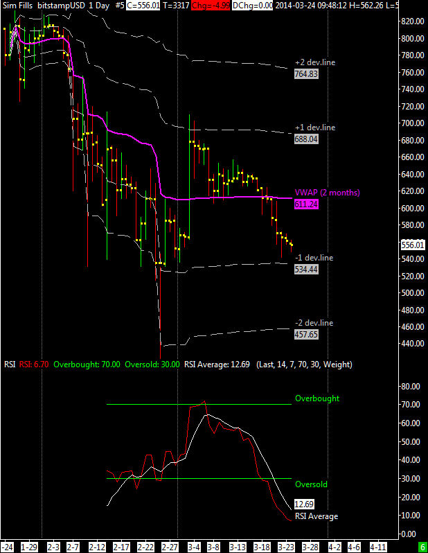 In the last days XBT/USD started to break below the long term VWAP (~$445) and if it makes further downside progress the breakout will become very obvious.