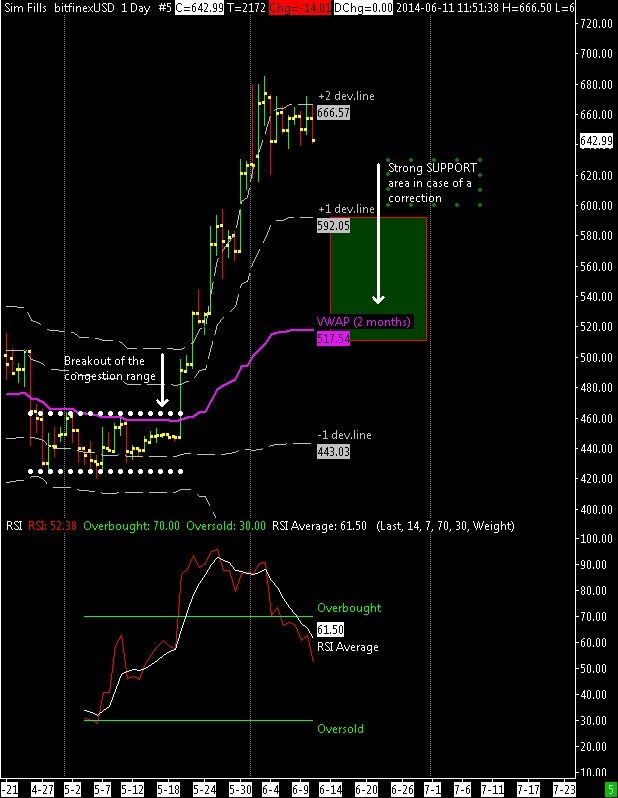 I believe that bitcoins will remain within these extremes of the price channel between 530 and 630 dollars with the nearest resistance located at about 610 dollars. The oscillator volumes is still negative and could become positive with a strong break of $ 630.