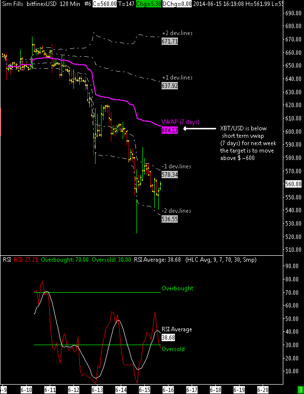 There was not enough volatility to reach $ 530, XBT / USD stopped at $555, the middle level between 530 and 580 dollars (the midpoint of the price channel).