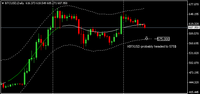 With the recent level of volatility (relatively low) a drop to $500 is possible and i think that there are many investors out there ready to buy at a cheaper price, at or below five hundreds dollars.