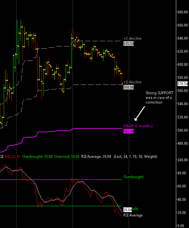 We have ~$570 and the VWAP itself at $500. At the moment the price is floating around the first positive deviation line ($570) i’m not sure if it can react from here or not despite the fact that the daily RSI is very oversold, but if during August there will be a drop down to $500 i’ll probably increase my position.