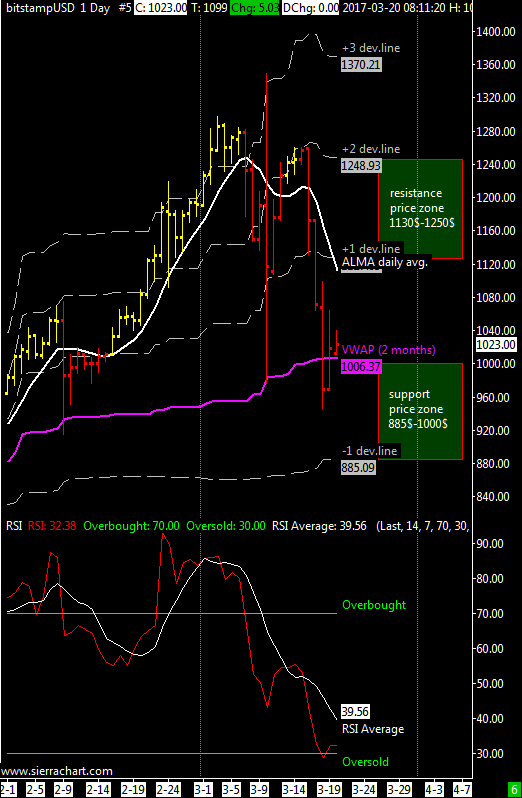 XBT / USD weekly price range is 885$-1130$ | The range of this week gives a support area at 880$ and resistsance from 1130$.