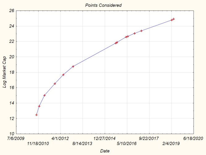 Log(Market Cap)~=7.775+time^0.352+(0.1*exp(-time/0.1))