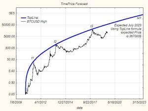 A careful observer has probably noticed that the coefficient for time is lower when calculating Tops instead of Bottoms (0.337 instead of 0.352) and there is an easy explanation for this: as long as bitcoin market cap grows in size there is more inertia and it is more difficult to manipulate the price far away from the bottom line, therefore I expect with the passage of time to have the next important Tops closer and closer to the reference line or bottom line or if you prefer the “Fair Price Line”, call it as you want.