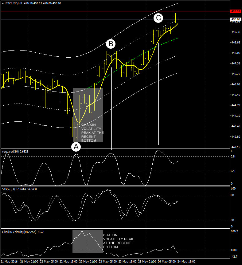 Hourly chart of ethereum classic, again bubbles are clearly visible. Some congestion outside the upper solid deviation line it’s the warning signal, be prepared to open a short. Now volatility is a bit lower and this altcoin is moving inside the dotted deviation lines. I see a buying opportunity once 1.85 usd is tested.