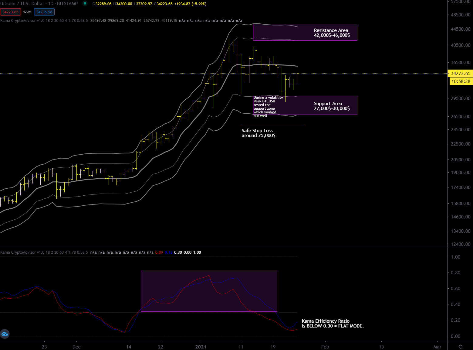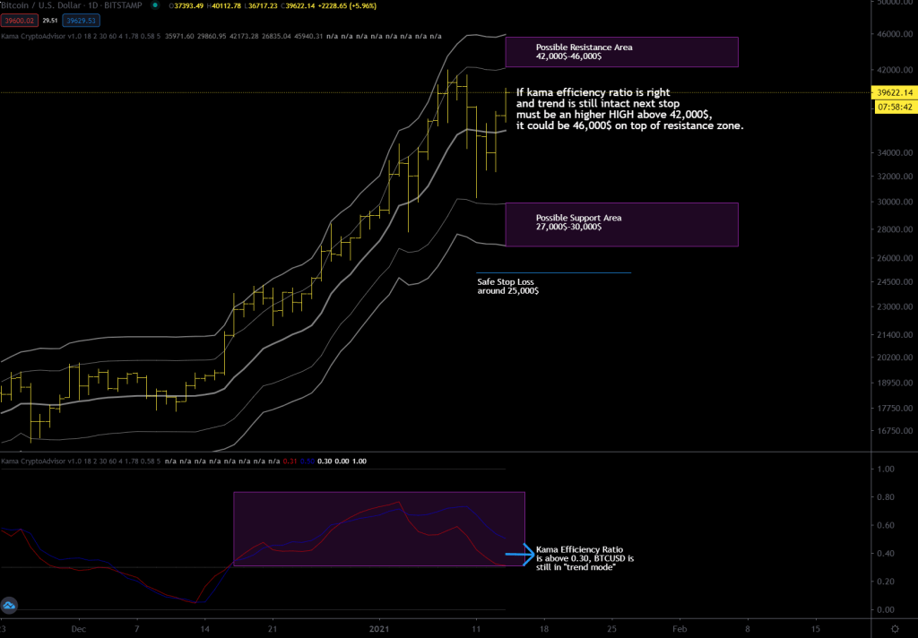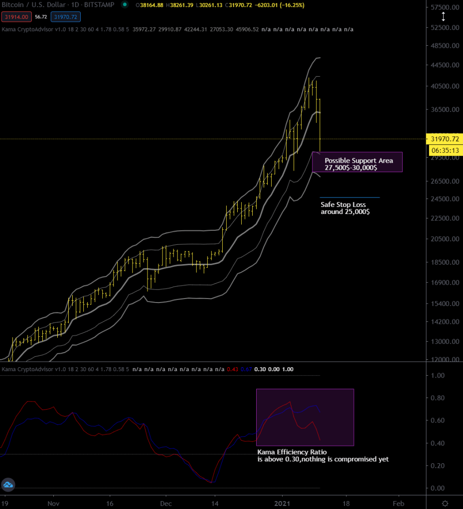Stay alert and lucid because a good buying opportunity could be coming, between $29K and $37K. It’s crucial to see if these days BTCUSD will stay or not above weekly kama at 51,000$