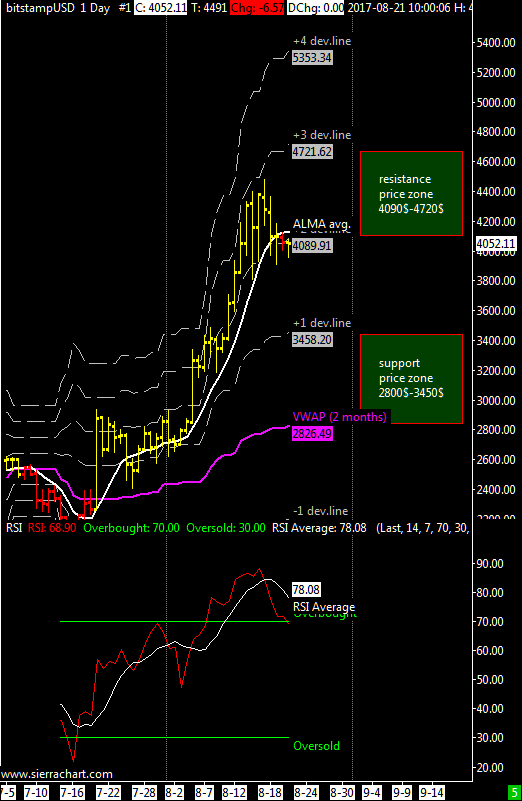For the resistance zone the most probable range is from 17k to 21k dollars while for the support zone the range is 11000$-14300$.