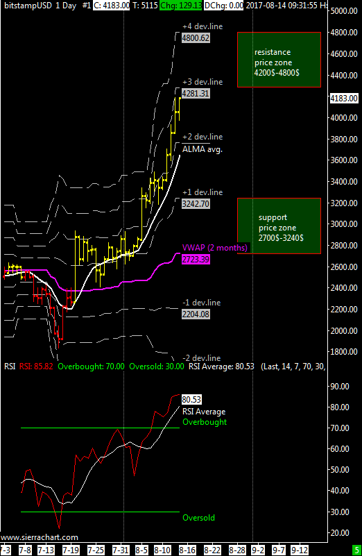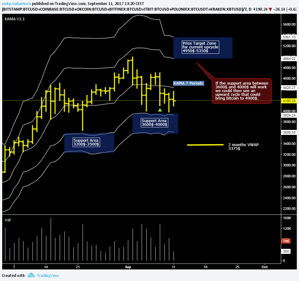 XBT/USD weekly price range at 3650$-4300$ | As I wrote on twitter the market found support within the support area of my previous update that had a lower limit of $2800. I would like to point out that I will not increase my long-term position opened between 2014 and 2015, but I will tell you when there will be a buying opportunity.